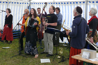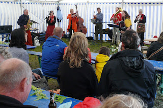 Zum Abschlußkonzert des Elbe-Saale-Camp hatte Jutta Röseler in diesem Jahr Fräulein Winkelmann aus Berlin herangeholt. Eine Weltmusikband, die sie ebenfalls in Rudolstadt kennengelernt hatte. "Im letzten Jahr haben diese Musiker beim TFF vor einem Brunnen gestanden und klasse Musik gemacht, da dachte ich mir, die lädst du mal ein", sagte sie bei der Begrüßung der Musiker.